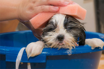 Devido à convivência tão próxima com seus tutores, os banhos são uma realidade na rotina dos animais de companhia. No entanto deve-se levar em conta que frequência muito alta de banhos pode prejudicar a saúde da pele e trazer problemas ao pet. Com exceção de banhos terapêuticos, indicados pelo médico veterinário para tratamento, uma frequência aceitável é a de intervalos quinzenais. Cuidado com a proteção dos ouvidos durante o banho também é importante para evitar que a água entre no conduto auditivo e ocasione problemas.