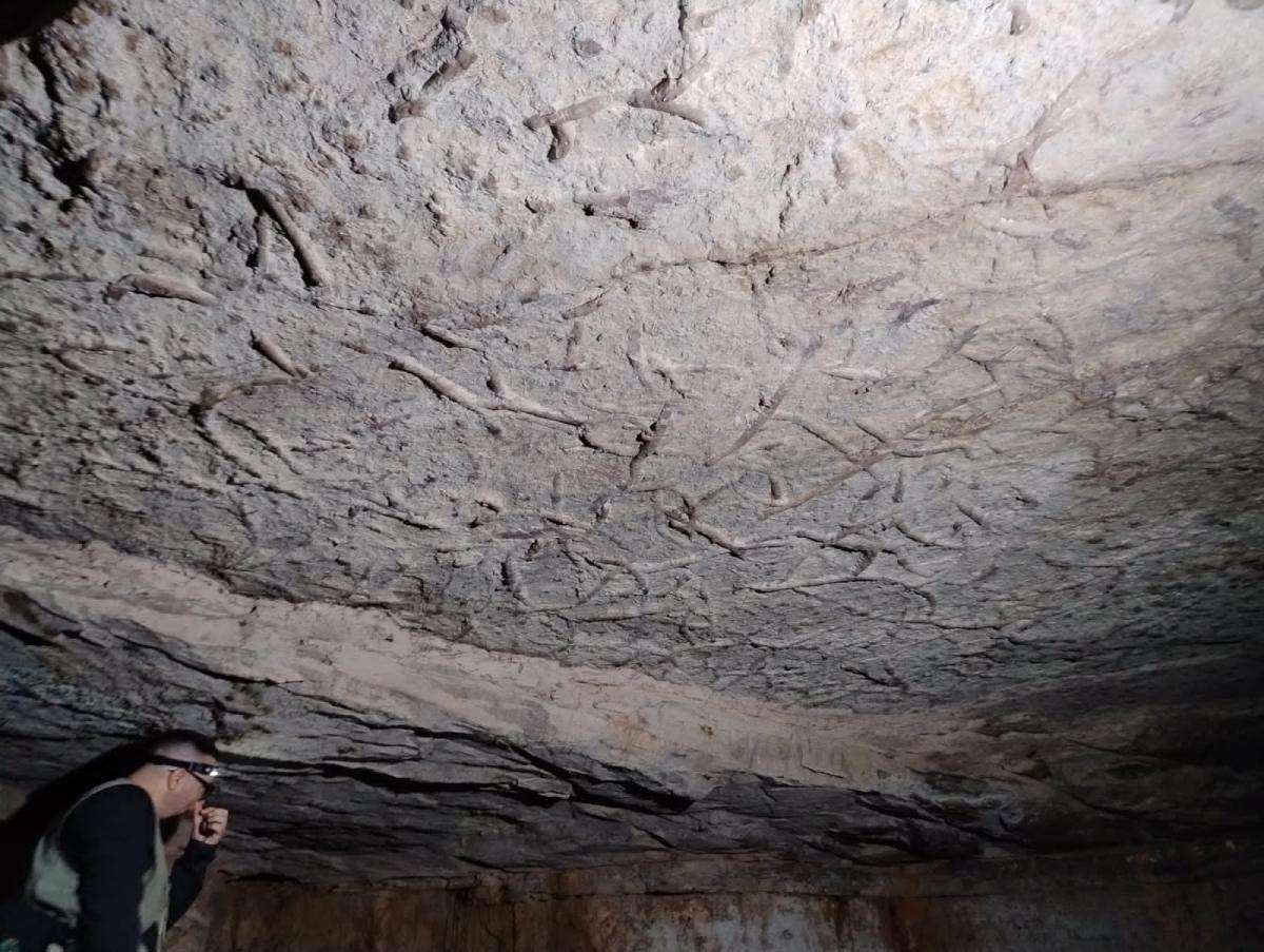 Além disso, nós também realizamos trabalhos de campo na região das cavernas, do complexo Aroe Jari. Nessas cavernas também se tem registros de icnofósseis, que são marcas deixadas por seres vivos no passado e que também são importantíssimos para se entender essa história geológica dali.