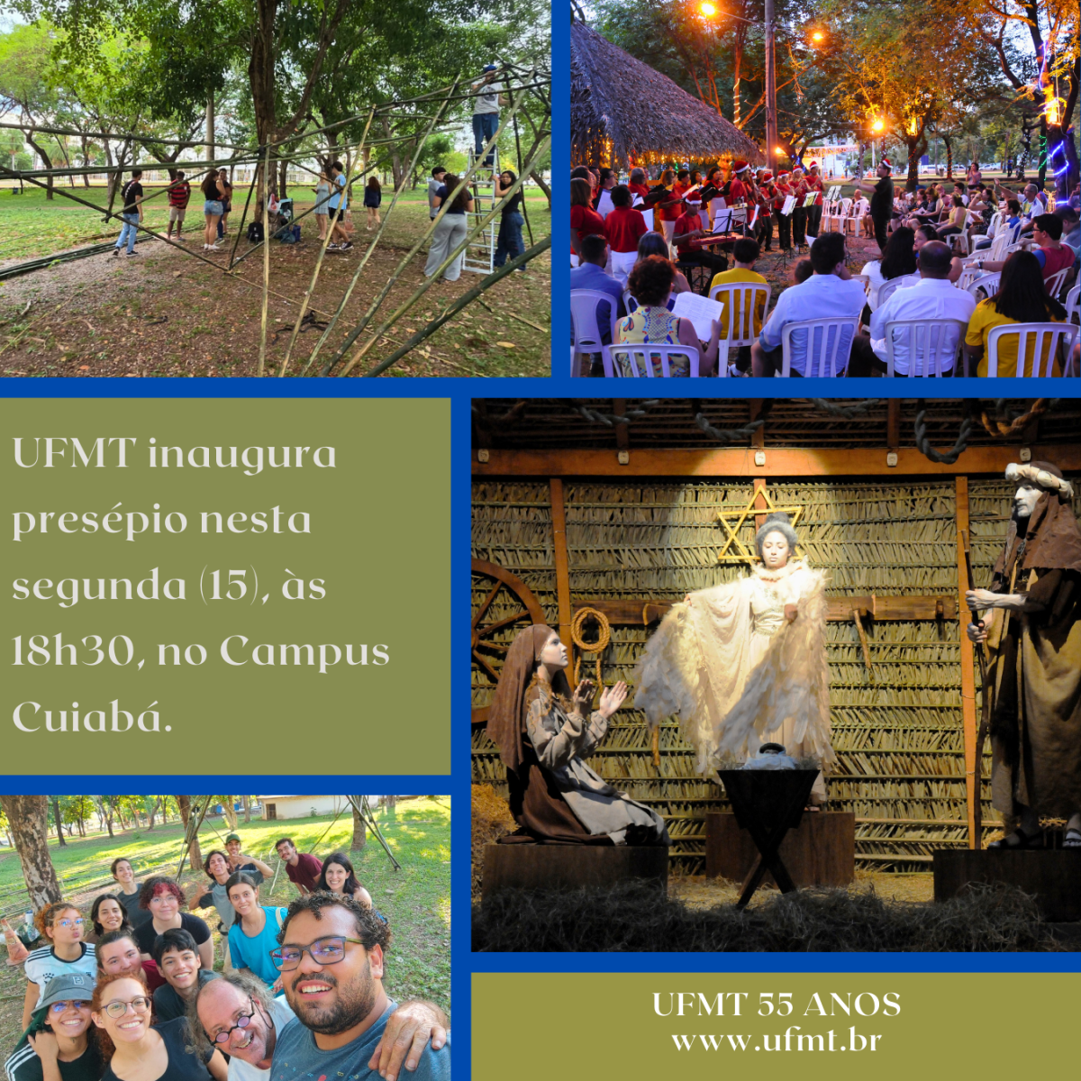 A Universidade Federal de Mato Grosso (UFMT) inaugura, nesta segunda-feira (15), às 18h30, o presépio natalino que marca o encerramento da programação comemorativa dos 55 anos da instituição. A instalação está localizada em frente à Faculdade de Administração e Ciências Contábeis (FACC), com acesso pela Guarita 1, na Avenida Fernando Corrêa da Costa, no Campus Cuiabá.