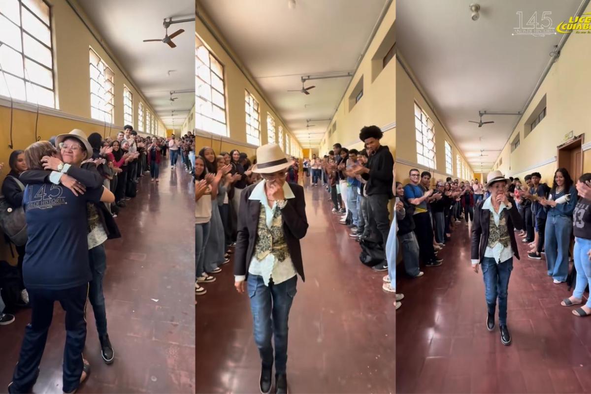 Com 4 décadas dedicadas a Educação, a professora de história, Claudia Noemia Souza, 65, recebeu homenagem de alunos e colaboradores da Escola Estadual Liceu Cuiabano, onde trabalhou por 25 anos. Ela recebeu um "corredor do amor" e foi ovacionada enquanto passava.