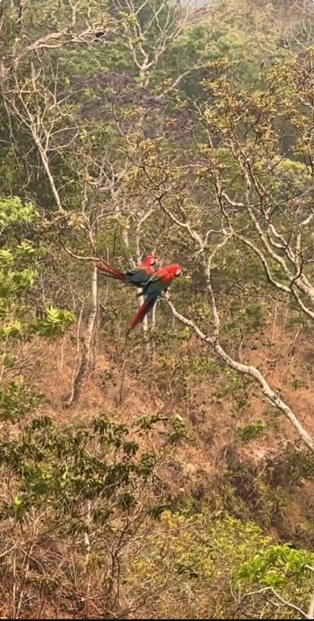 Araras-vermelhas foram vistas na cachoeira Véu de Noiva, da Chapada dos Guimarães (67 km ao norte de Cuiabá), durante a tarde desse sábado (14). O local é um dos mais conhecidos e visitados do Mato Grosso.