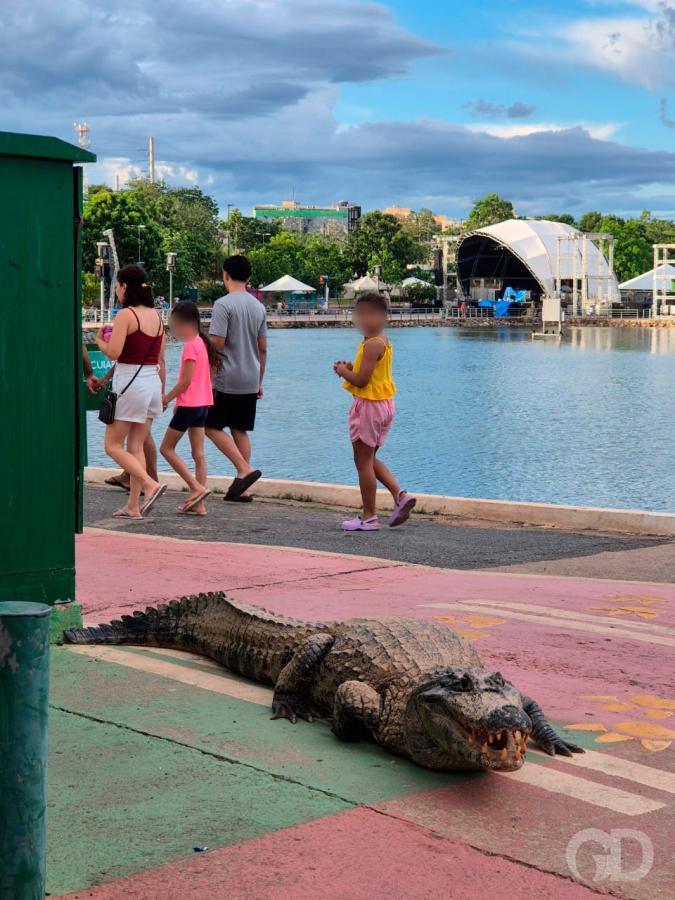 Apesar de não haver registro de ataque a humanos, o jacaré já matou aves e um cachorro no lago.