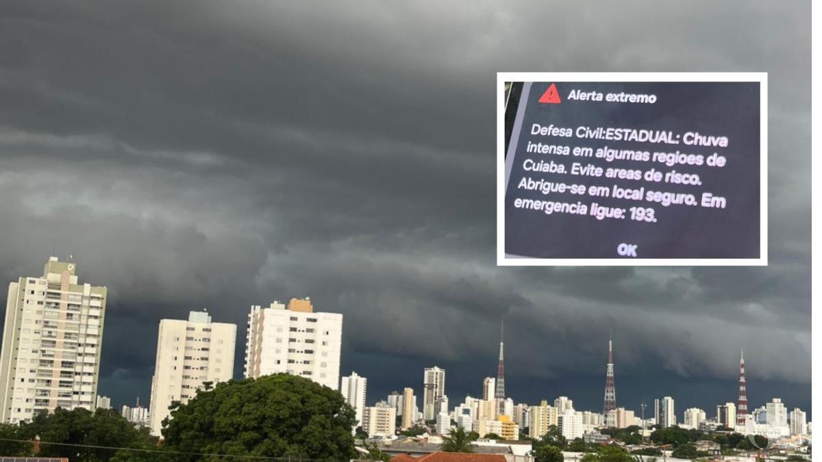 A Defesa Civil de Mato Grosso emitiu, no meio da tarde deste sábado, ‘alerta extremo’ com rosco de alagamento para algmas regiões de Cuiabá. O órgão afirmou que uma chuva intensa deve assolar a capital no restante do dia e pediu para que moradores de regiões de risco que abriguem em locais seguros.