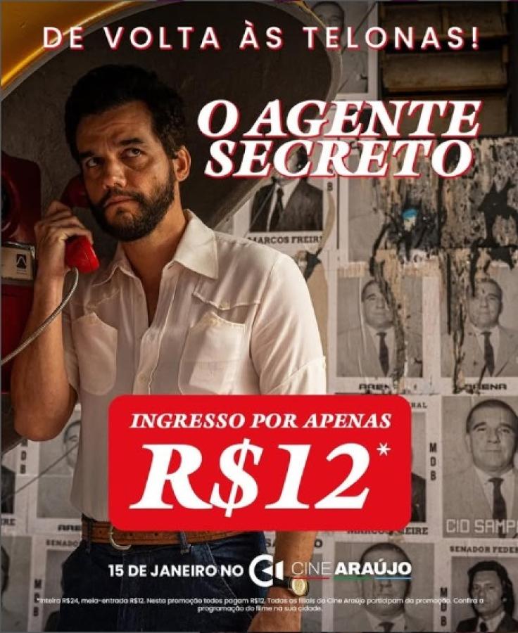 Para quem ainda não viu o ganhador do Globo de Ouro, o Agente Secreto, ainda há tempo. Alguns cinemas de Cuiabá mantém o título em cartas, inclusive com ingresso promocional de R$ 12.