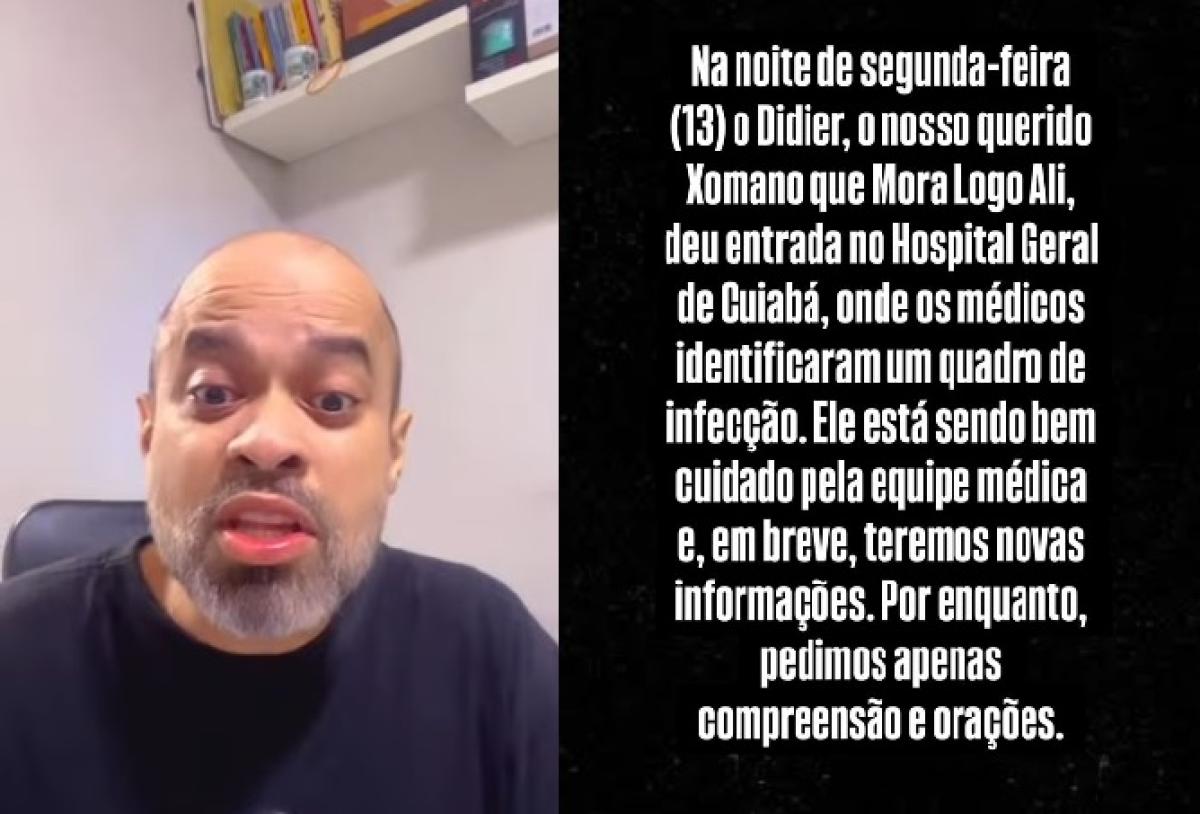 O humorista Didier, conhecido pelo personagem Xômano que Mora logo Alí foi internado, na segunda-feira (13) com um quadro de infecção. Ele está hospitalizado na Unidade de Terapia Intensiva (UTI) do Hospital Geral e Maternidade de Cuiabá e o estado é estável.