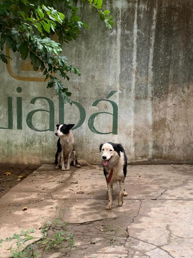 Moradores do Jardim Flamboyant, em Cuiabá, foram surpreendidos por dois cães que apareceram em uma das ruas do bairro. Eles estavam sujos e assustados.