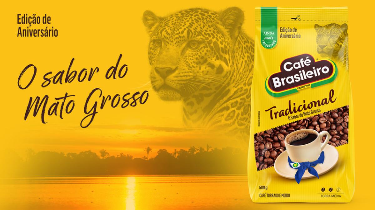 Em comemoração ao aniversário de 277 anos de Mato Grosso, a marca Café Brasileiro lançou embalagem especial com edição limitada. No pacote, uma onça-pintada estampa o produto.