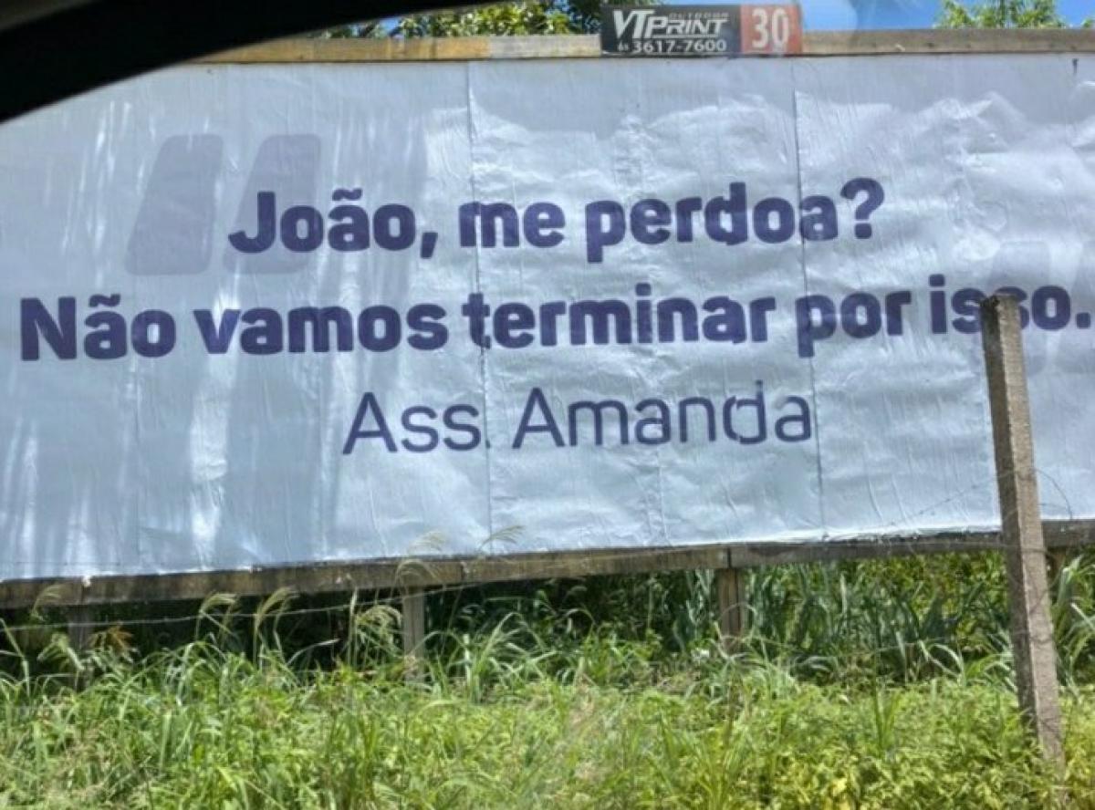 Desde o início da semana uma série de outdoors tem intrigado os cuiabanos com supostos pedidos de desculpa para a pessoa amada. Pelo menos 3 foram flagrados por internautas e compartilhados nas redes sociais.