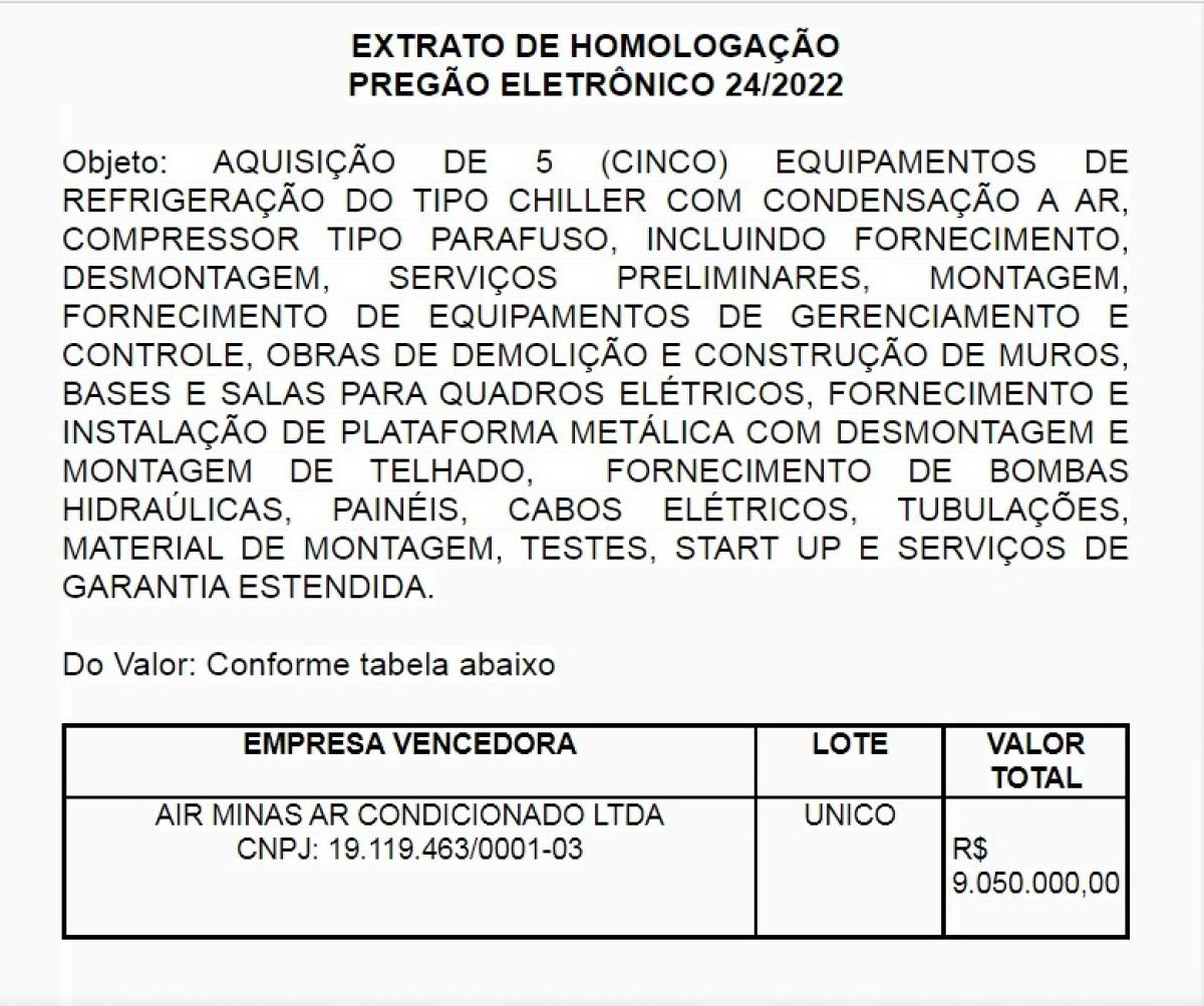 Ao todo, conforme extrato do pregão eletrônico divulgado no Diário Oficial desta quarta-feira (10), são 5 equipamentos de refrigeração novos. Contudo, o gasto milionário para esfriar o clima também conta engloba os custos de montagem, obras, testes e outros serviços paralelos à instalação.