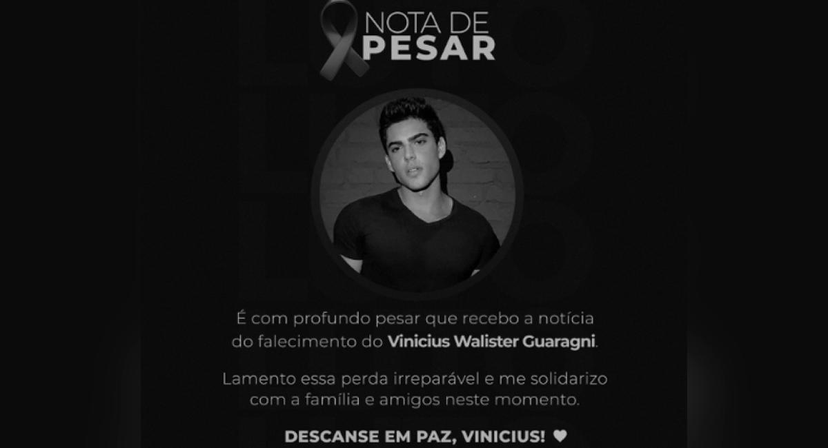 Primeira-dama de Mato Grosso, Virginia Mendes usou as redes sociais para lamentar a morte do maquiador e cabeleireiro Vinicius Walister Guaragni, 27. O jovem foi encontrado morto na manhã de segunda-feira (22), em seu apartamento, em São Paulo.