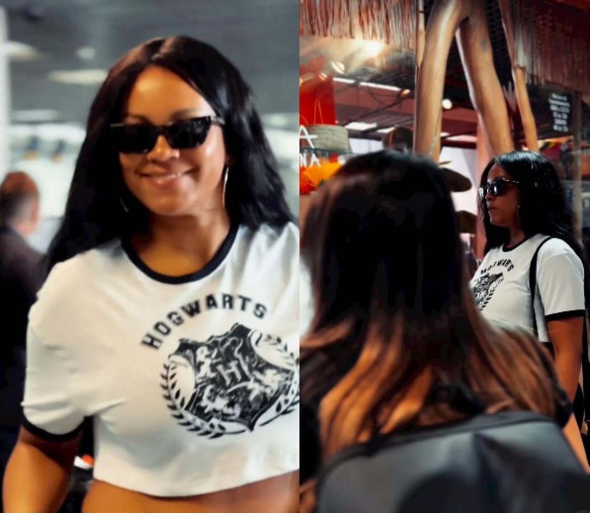 Ao desembarcar no aeroporto Marechal Rondon, a Rihanna Brasileira foi tietada por fãs e tirou fotos.