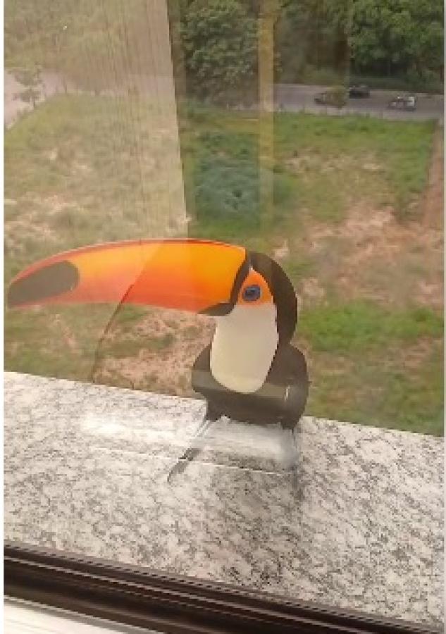Um tucano faz visitas diárias aos funcionários de um prédio empresarial na avenida Historiador Rubens de Mendonça em Cuiabá. O animal silvestre costuma “bater ponto” todas as tardes, na janela do edifício. Ele bate o bico no vidro, num pedido para entrar, mas vai embora após minutos de insistência.