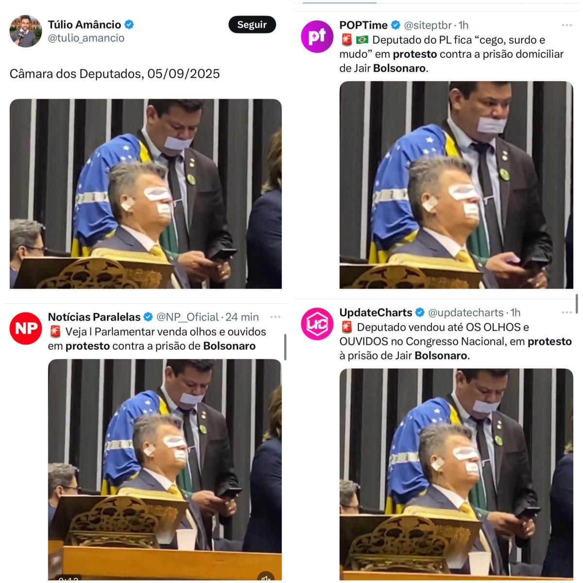 Durante o movimento, o que chamou a atenção foi o deputado federal e pré-candidato ao Senado por Mato Grosso, José Medeiros (PL), que adesivou os próprios olhos, boca, e ouvidos como forma de protestar contra a prisão.