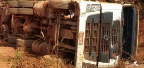 Uma carreta carregada com tijolos tombou na BR-158, próximo a cidade de Porto Alegre do Norte (1.125 km a Nordeste de Cuiabá). Com a colisão, o motorista do veículo ficou ferido.