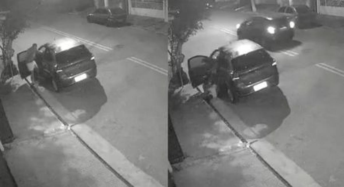 Câmeras de segurança gravaram a ação. O metalúrgico José Luiz, de 56 anos, entrava na garagem, quando seu cachorro fugiu. Ele deixou o carro, Ford Ka SE plus cinza, do lado de fora, para recuperar o animal.