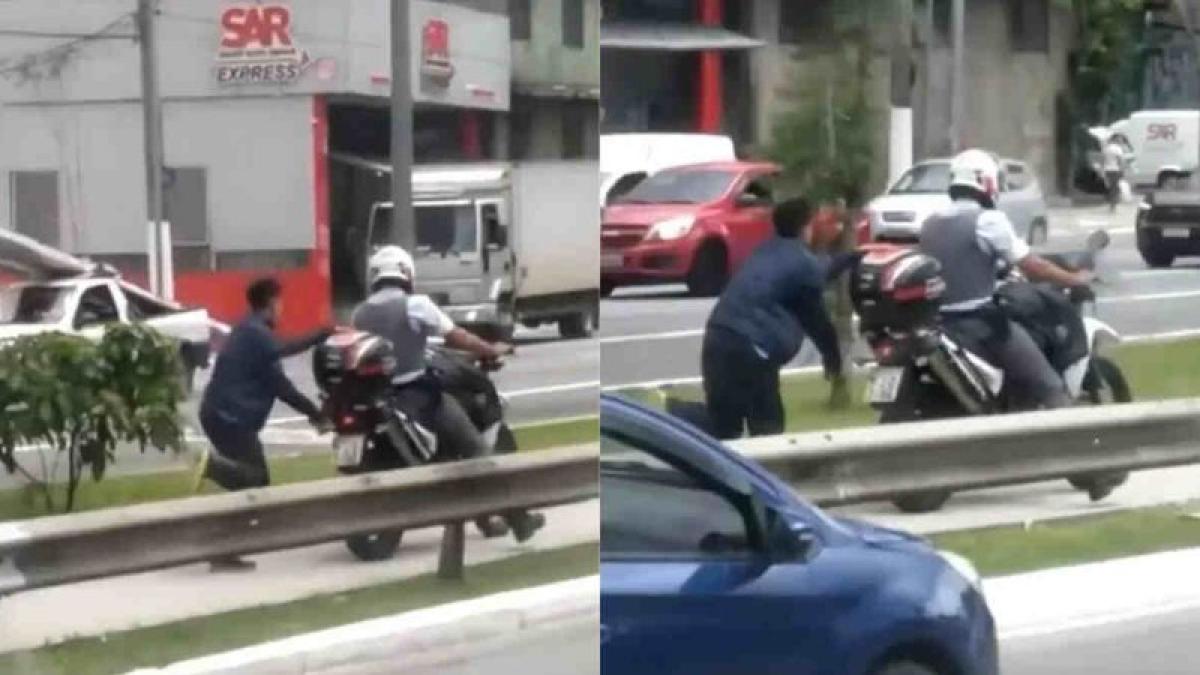 ‘Algemou e está andando igual a um escravo. Vai roubar mais agora?‘, diz um homem, não identificado, enquanto filma a cena de dentro de um carro.