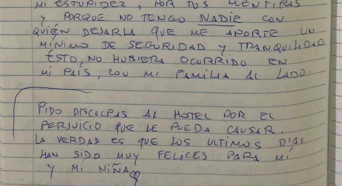 Segundo informações preliminares da Polícia Militar, a família era da Espanha. Na carta escrita em espanhol em um caderno, o pai pediu desculpas pelo feito, inclusive ao hotel onde estavam hospedados desde o dia 31 de maio. Afirmou que ele e a filha foram muito felizes nos últimos dias.
