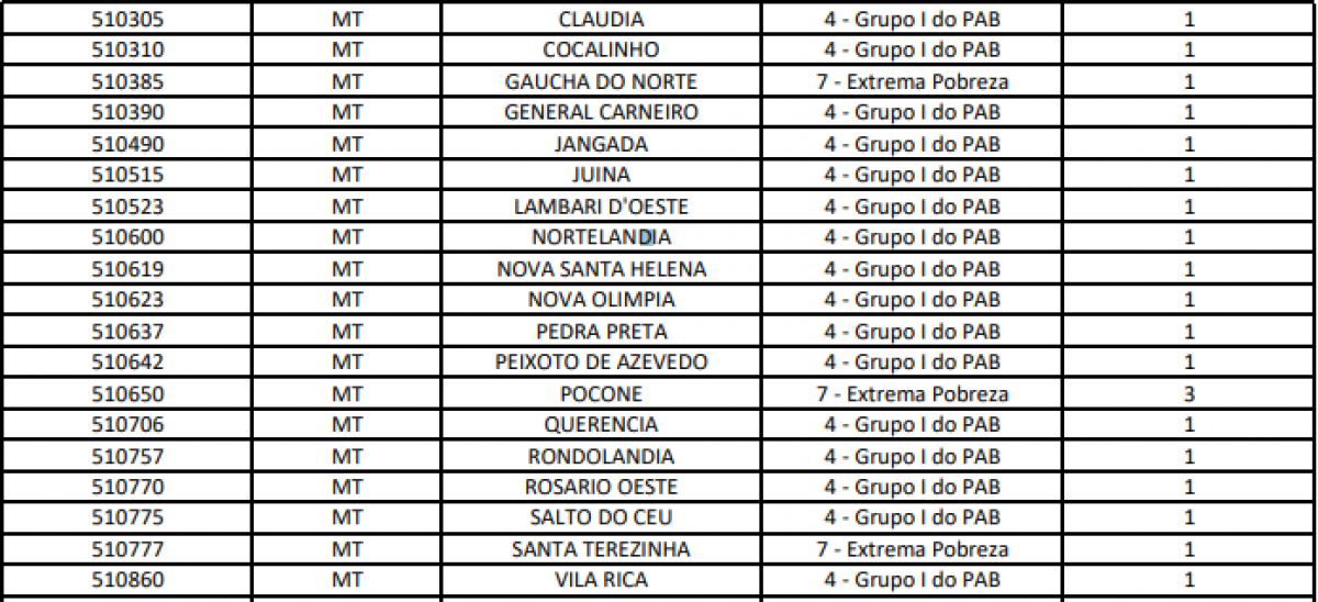 As vagas são decorrentes da desistência de participantes, fim das atividades de outros ciclos e reprovações. Ao todo, são 32 cidades do interior, incluindo Cáceres, Peixoto de Azevedo, Rosário Oeste, Campo Novo do Parecis e Barra do Bugres (veja lista abaixo).