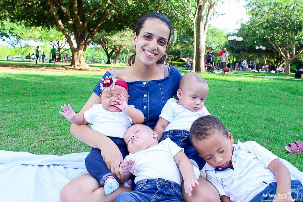 Com vaquinhas e ajuda de voluntários, a dona de casa Andreza Santos Araújo, 23, tenta criar os 4 filhos pequenos. O pai das crianças foi embora, deixando a mulher sozinha com o filho mais velho, de 4 anos, e os trigêmeos, que têm um ano e meio. Sem condições, ela precisa de doações.