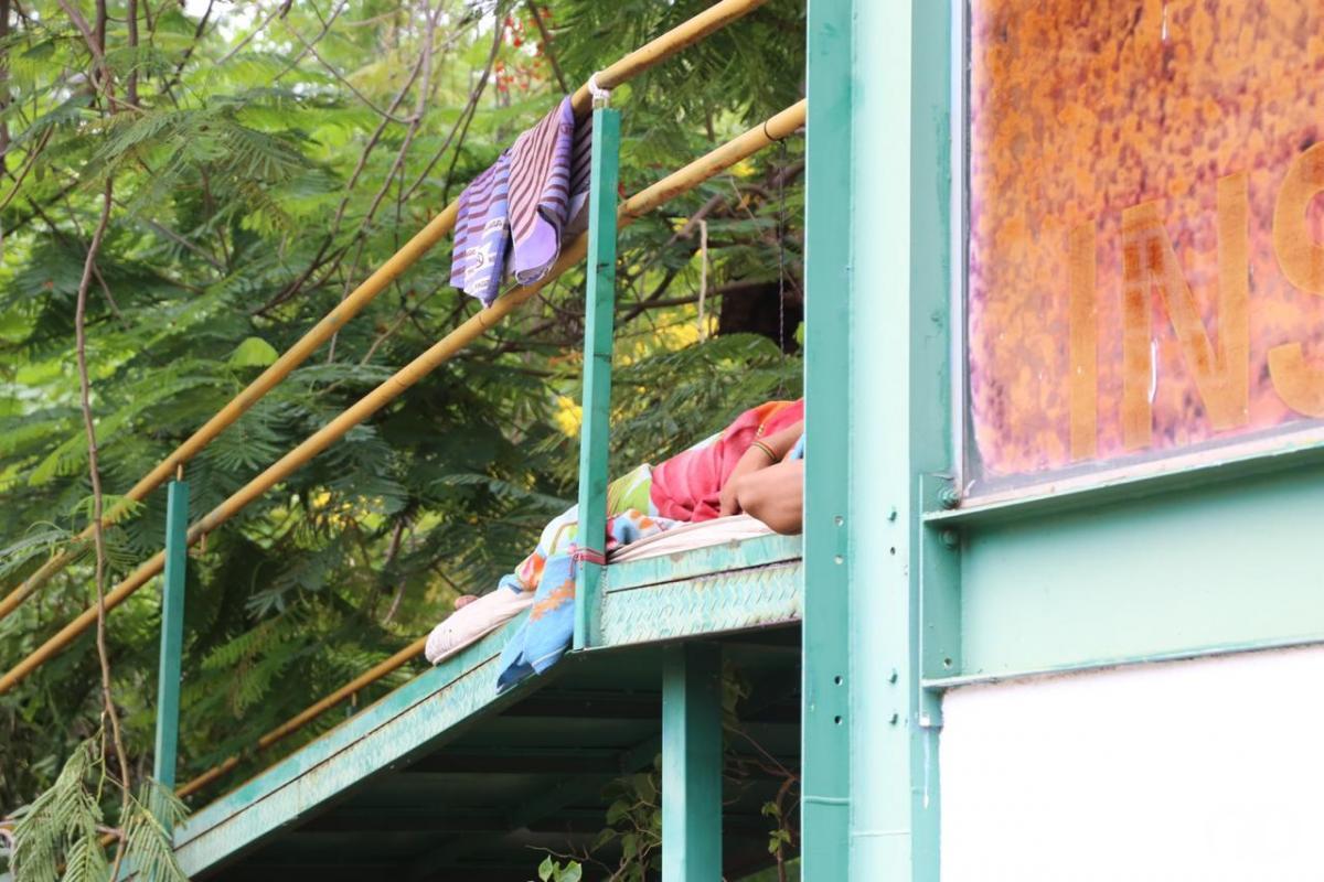 Além do abandono da estrutura, a situação do local é agravada por conta dos vários sem teto que usam a rampa de acesso ao prédio como cama e a escada como casa para se abrigarem do sol e da chuva.