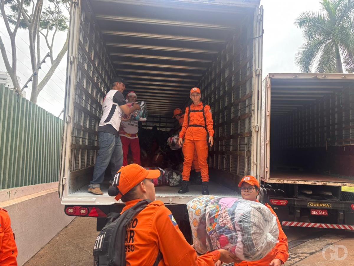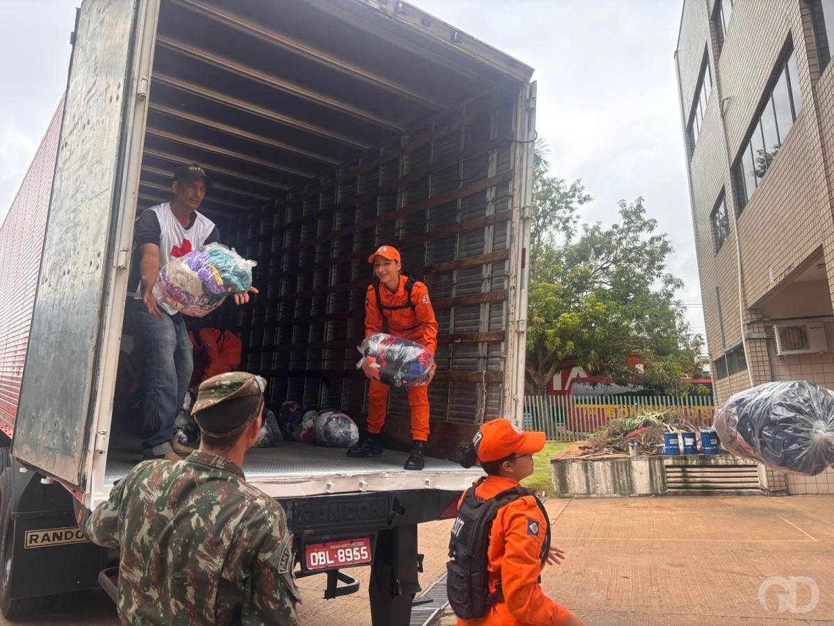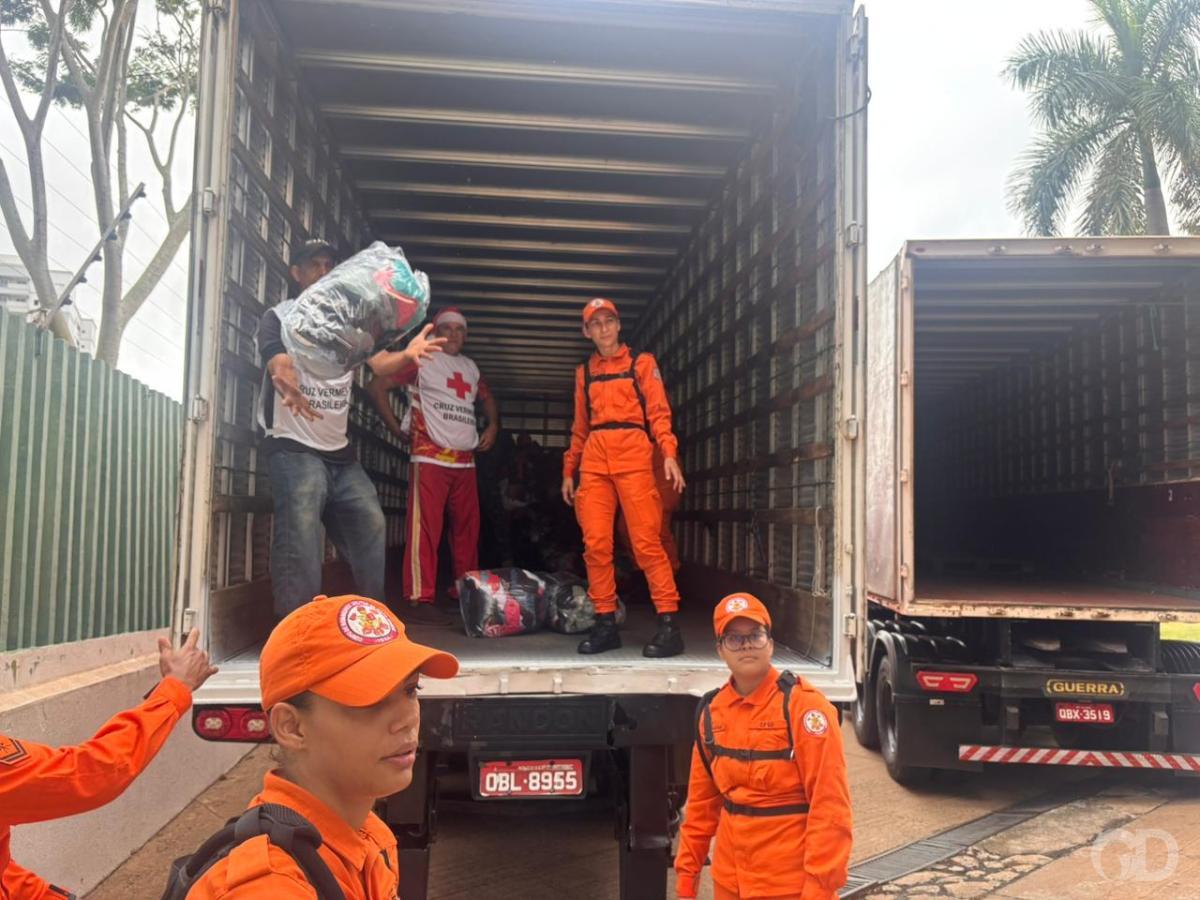 O carregamento dos caminhões começou nas primeiras horas da manhã desta quarta, com o apoio de mais de 25 voluntários da Cruz Vermelha, do Exército Brasileiro e do Corpo de Bombeiros.