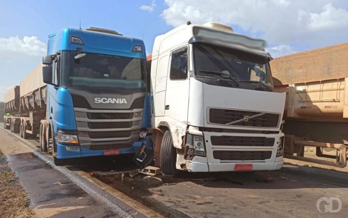 Acidente envolvendo três carretas bloqueou totalmente o trânsito na BR-163, no km 681, em Lucas do Rio Verde (354 km ao norte de Cuiabá), no início da tarde desta segunda-feira (21).