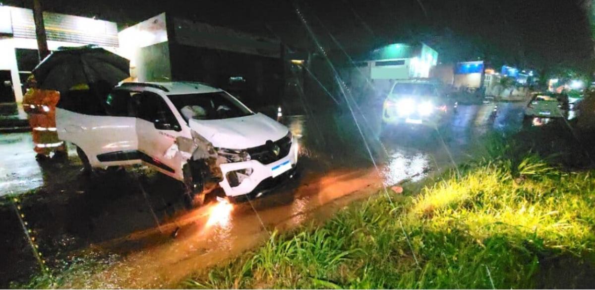 Um acidente envolvendo uma motocicleta e um Renault Kwid deixou 3 pessoas feridas na madrugada deste domingo (11), no bairro Safira, em Sinop (500 km ao norte de Cuiabá). Chovia no momento.