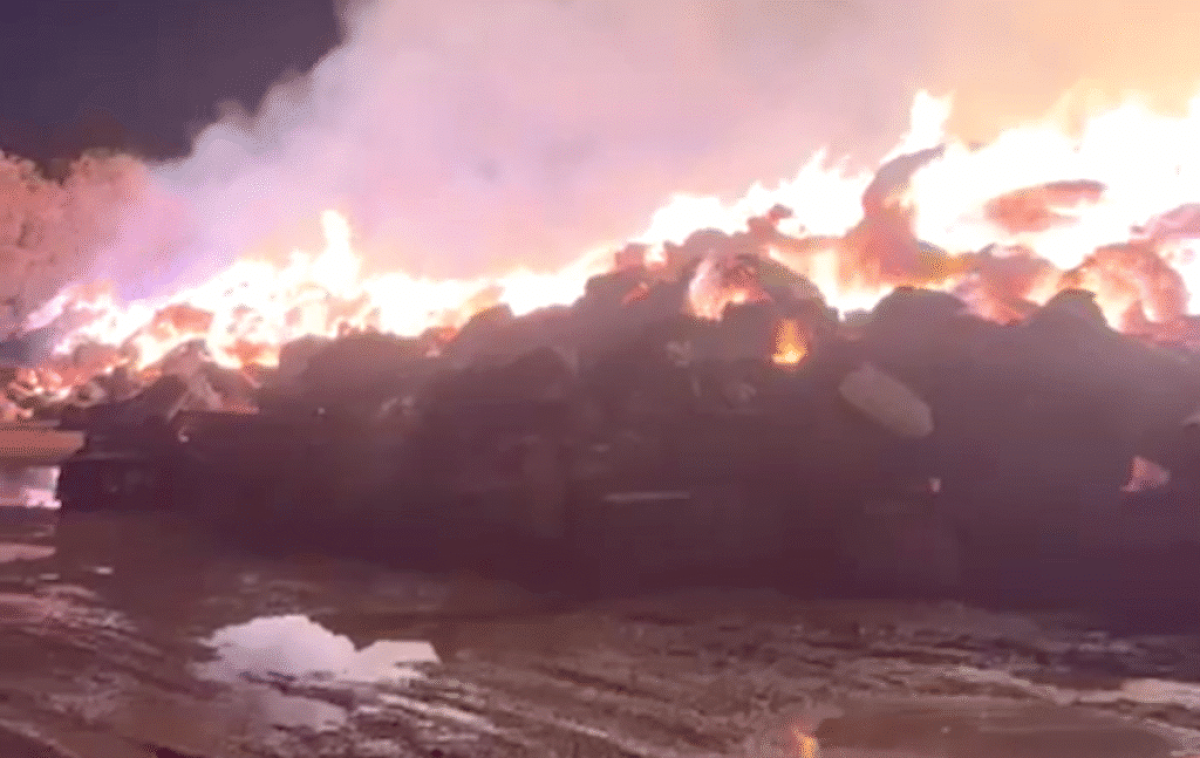 Um incêndio de grandes proporções mobilizou o Corpo de Bombeiros Militar de Mato Grosso (CBMMT), na noite de domingo (14) e manhã desta segunda-feira (15), no pátio de estocagem de uma algodoeira localizada às margens da BR-163, no km 741, em Sorriso (420 km ao Norte). Não houve feridos.
