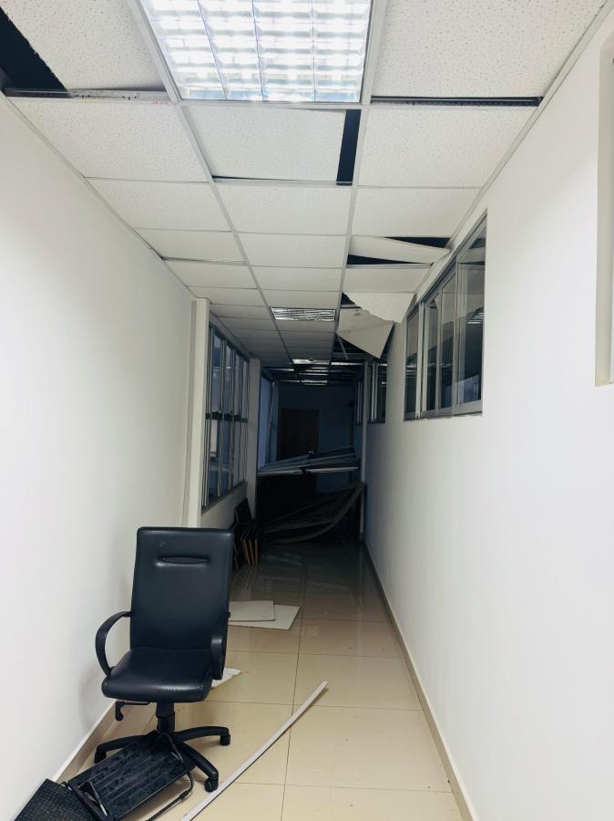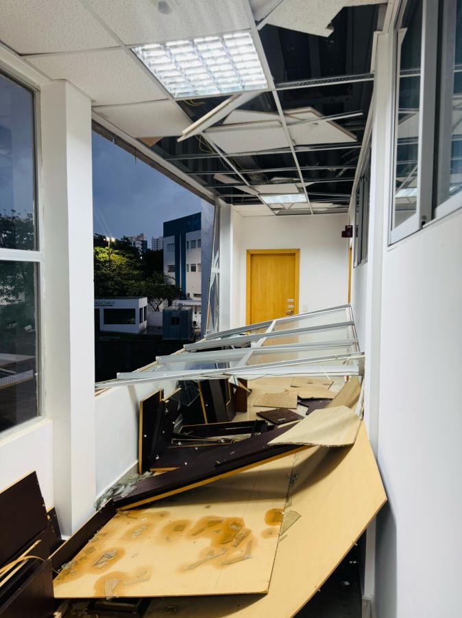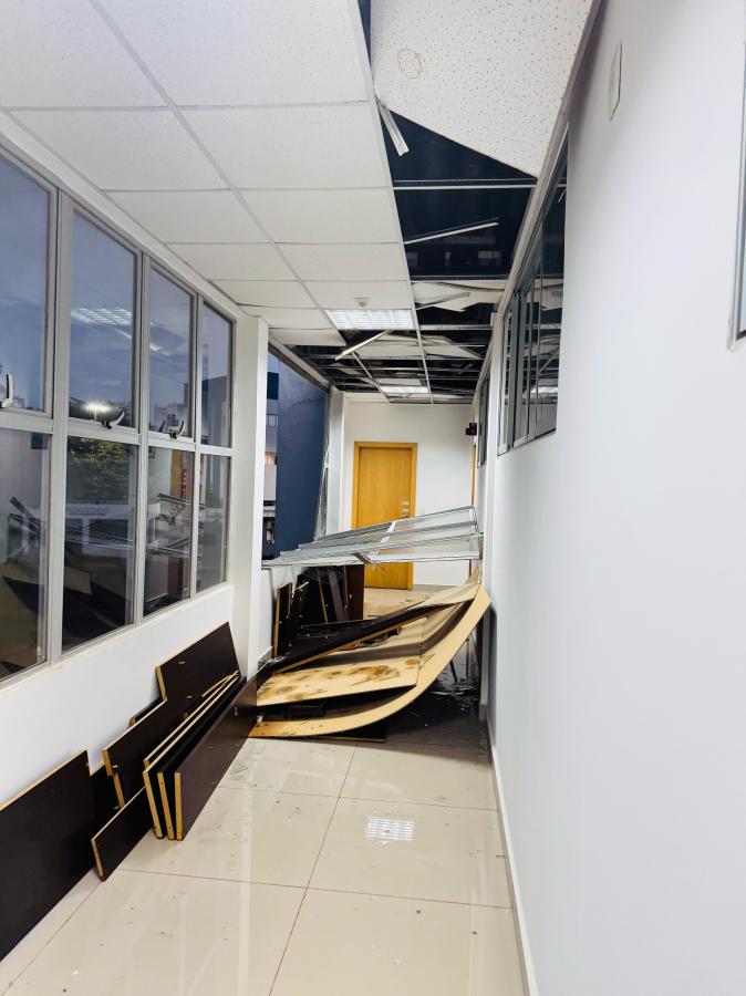 Moradores de um prédio residencial também sofreram danos materiais após a estrutura da garagem ceder com a ventania. Apesar dos prejuízos, ninguém se feriu. Parte do forro da Assembleia Legislativa também caiu durante a chuva.