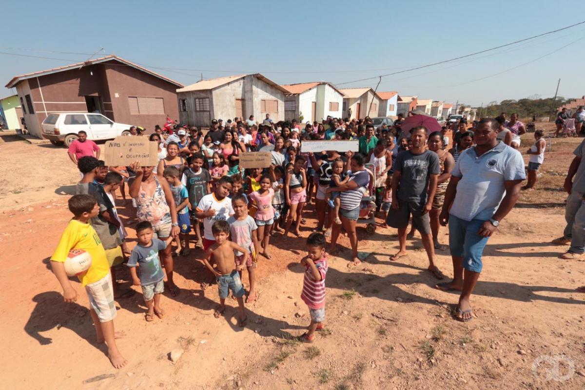 Ocupando imóveis há mais de um ano, os moradores do residencial Jonas Pinheiro III, na região do bairro Altos da Glória em Cuiabá, realizaram uma manifestação na manhã desta sexta-feira (12) para regularização do empreendimento e reivindicar sua permanência no local, após novo comunicado de reintegração de posse.