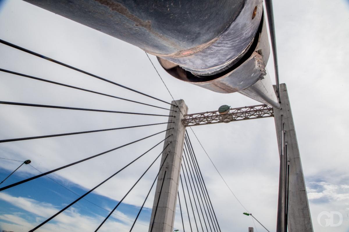 “São cordoalhas engraxadas e protegidas que fazem toda a transmissão dos esforços entre o tabuleiro, a parte baixa e os pilares, que são as antenas, o nome técnico, mas são os pilares”, detalha.