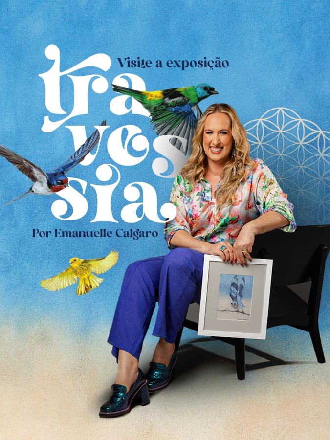 Sobre os pássaros serem a inspiração para a sua arte, Emanuelle explica que, para ela, as aves são mensageiras de Deus e simbolizam a liberdade que as pessoas buscam na vida. “Desde a primeira exposição, eles representam fases da minha vida, do meu emocional, do meu entendimento, da minha compreensão de mundo. Eles são isso, são o símbolo da liberdade que eu busco em todos os sentidos, inclusive uma liberdade dimensional, que vai muito além do comum”, completa.