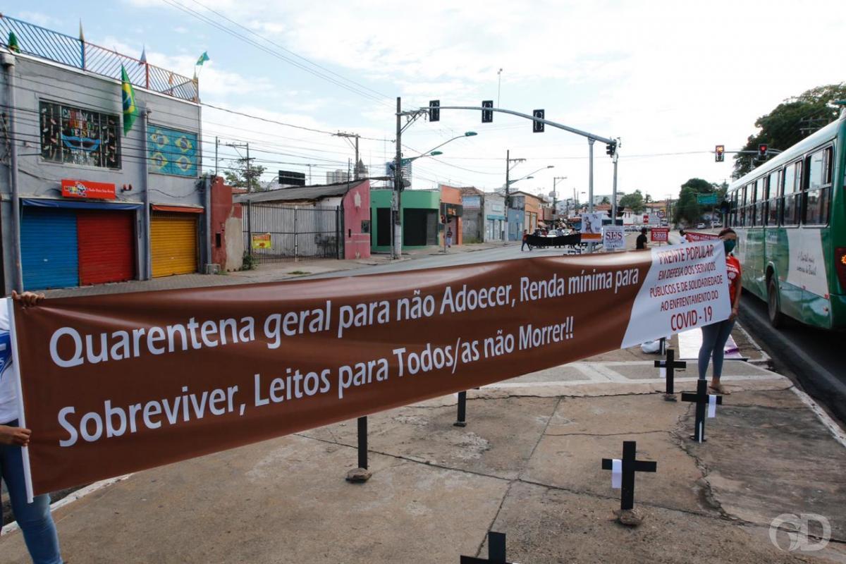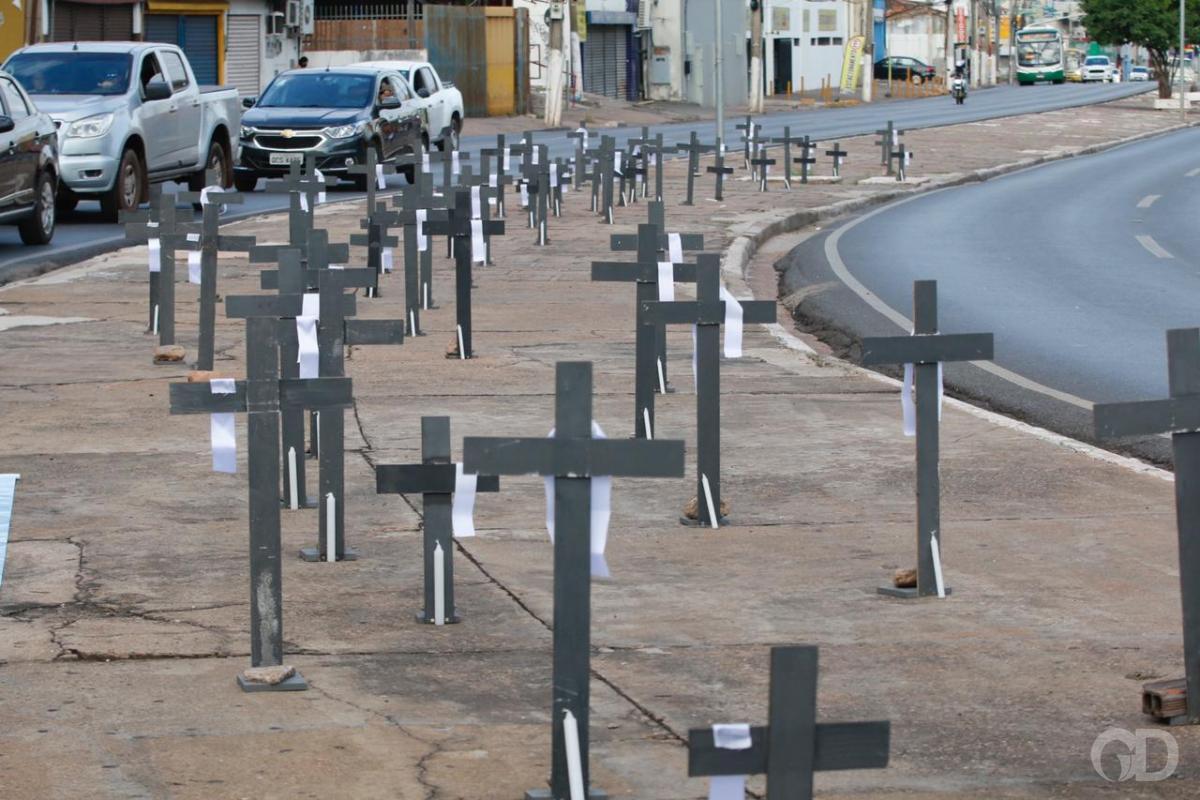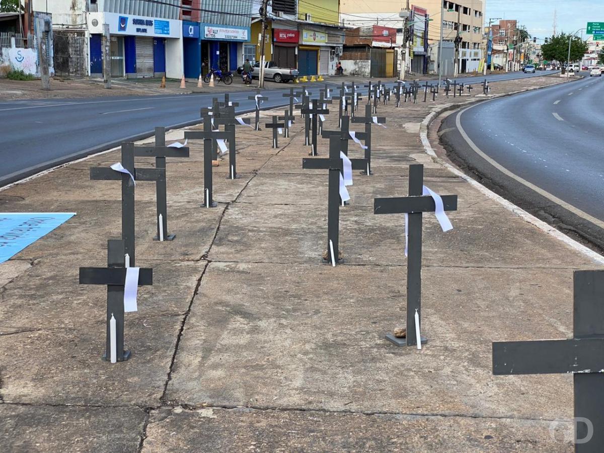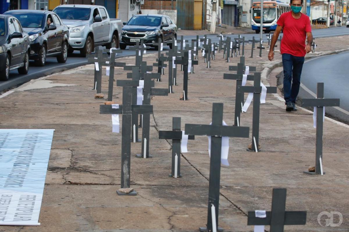 O ato foi organizado pela Frente Popular de Defesa dos Serviços Públicos, que espalhou pelo canteiro central da via uma cruz para cada uma das 98 vidas perdidas no combate ao coronavírus. A homenagem também serve como um alerta à população, que tem relaxado nas medidas de proteção e combate da doença.