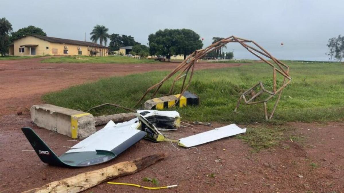 Imagens compartilhadas após o acidente mostram parte da asa da aeronave danificada.