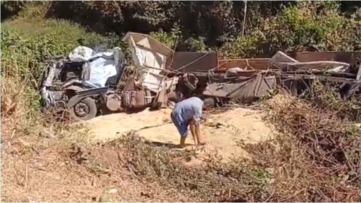 De acordo com portal Só Notícias, uma das carretas estava carregada com soja e saiu da pista. O veículo caiu no barranco e ficou totalmente destruído.