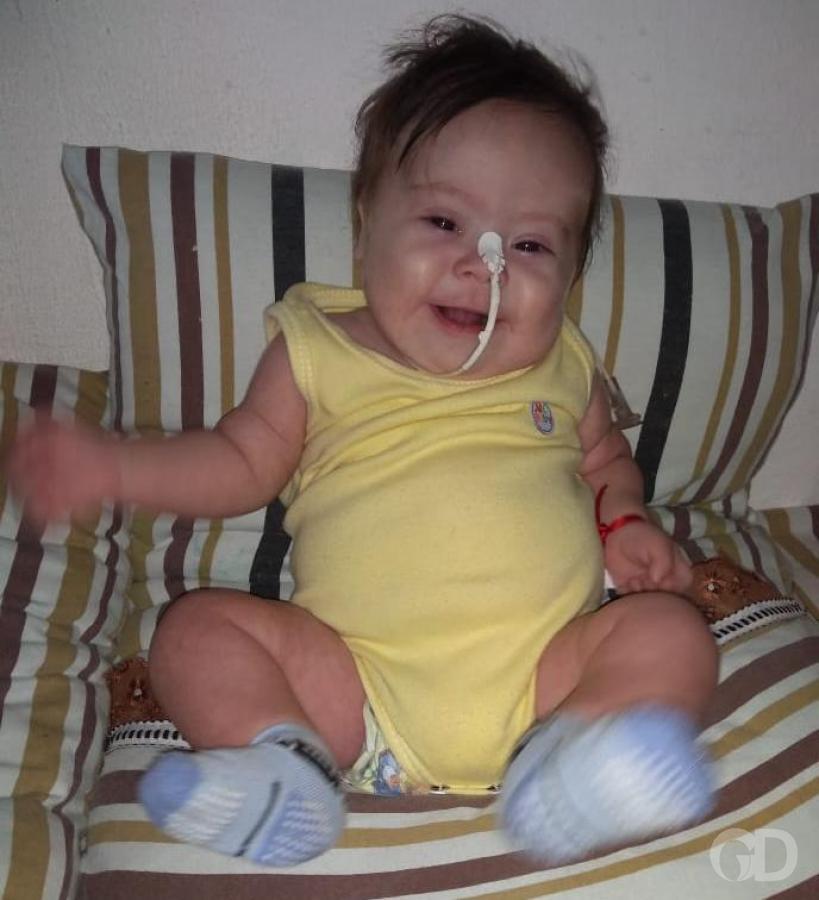 que o bebê já nasceu com a cardiopatia e também tem Síndrome de Down. Ele toma remédios e se alimenta por sonda. A mãe, de 24 anos, se dedica aos cuidados do filho e o pai acabou de conseguir um emprego. Ele não estava trabalhando até poucos dias.