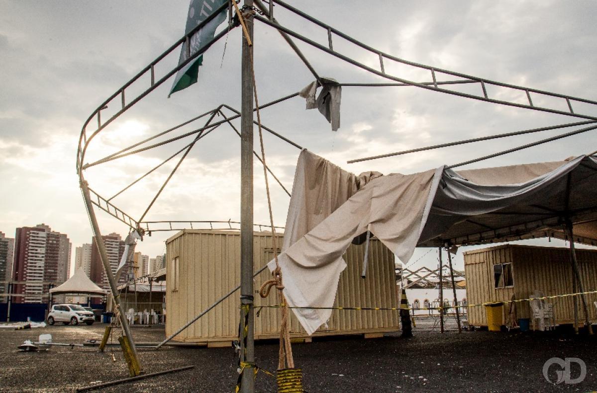 Além da ventania e chuva forte, foi registrado granizo durante a tempestade.
