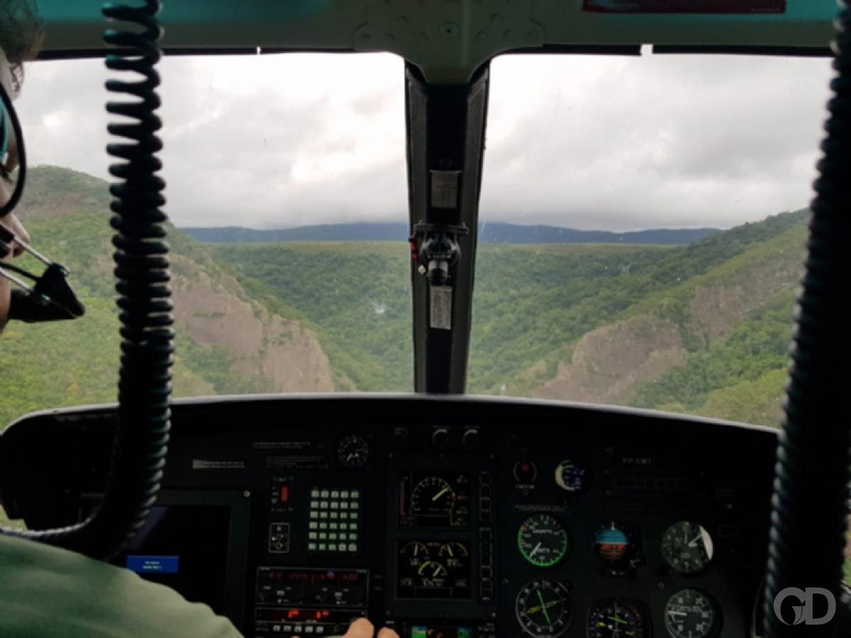 Imagens gravadas dentro do helicóptero mostram o difícil acesso e o mau tempo instalado na região. "O local é de muita mata. Precisamos ter o máximo de cuidado possível e seguir com cautela porque na chuva é arriscado, já que a mata atrapalha a visão e com a neblina fica ainda mais impossível visualizar a aeronave", pontuou.