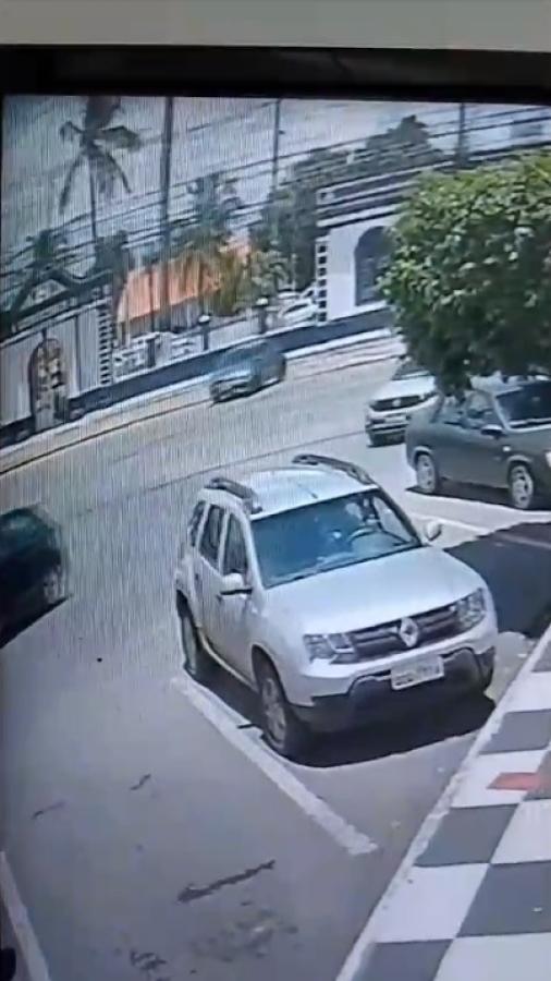 Câmera de segurança registrou o momento em que um veículo desgovernado desce da avenida Senador Metello e vai parar na porta de um batalhão da Polícia Militar, na avenida 15 de Novembro, em Cuiabá. O vídeo começou a circular nas redes sociais nesta terça-feira (4).