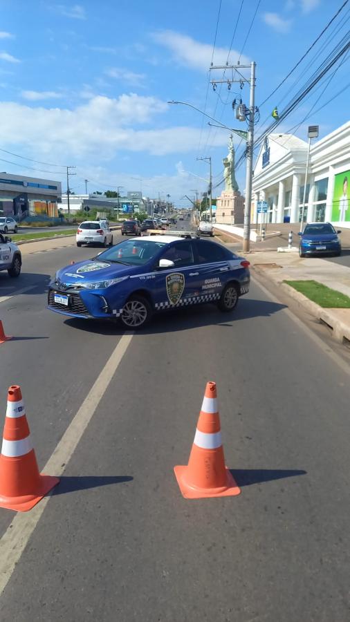A Guarda Municipal foi acionada e interditou parcialmente a via, liberando apenas a faixa exclusiva do Bus Rapid Transit (BRT) no sentido do Zero KM.
