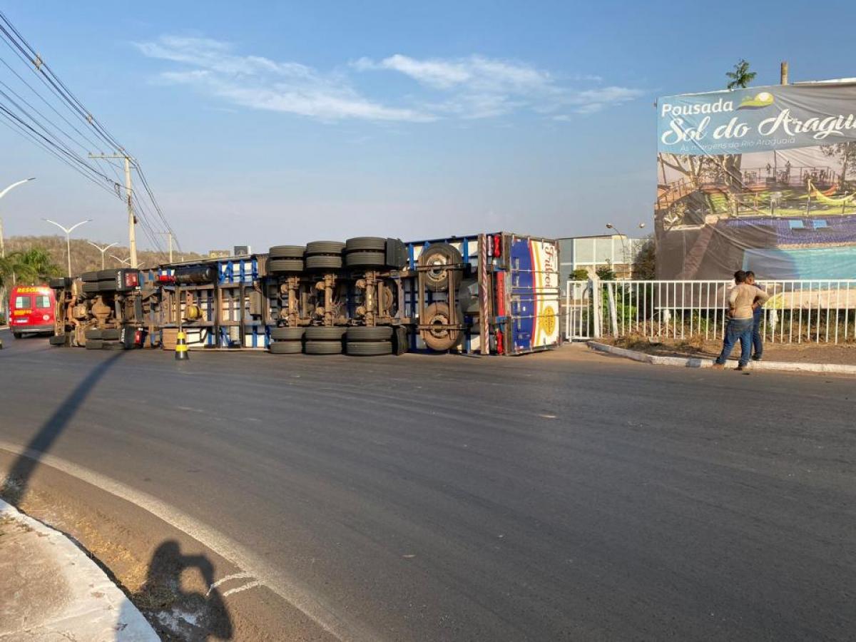 Uma carreta que transportava carne tombou na tarde de segunda-feira (13), em Barra do Garças (509 km a Leste de Cuiabá). O condutor não se feriu e outro veículo foi acionado para recolher o produto.