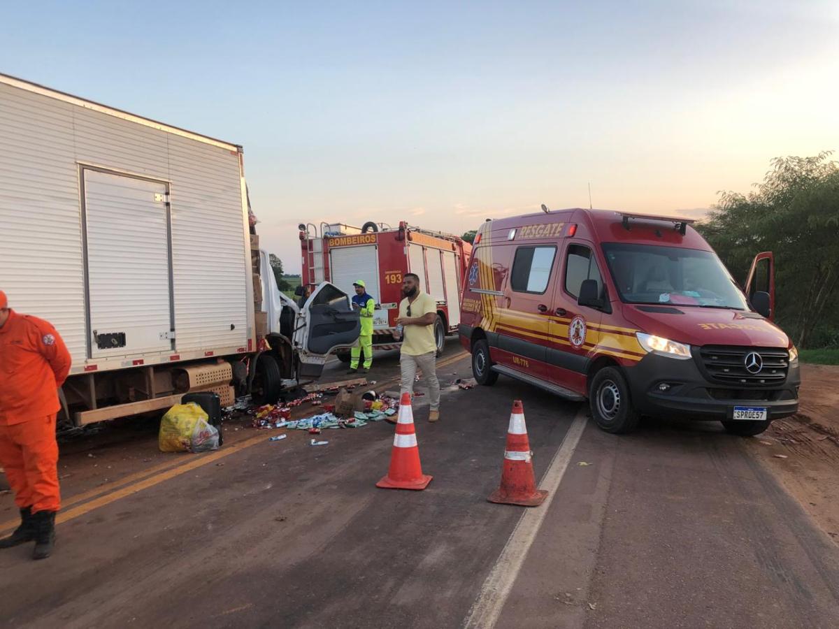 Um motorista ficou gravemente ferido em batida entre uma carreta e um caminhão na BR-163, próximo à Nova Santa Helena (622 km de Cuiabá), na manhã desse domingo (16). A vítima ficou presa às ferragens, apresentava fraturas nas pernas, hemorragia e quadro clínico considerado delicado. Vídeos mostram o caminhão baú com a lateral e cabine totalmente destruídas.