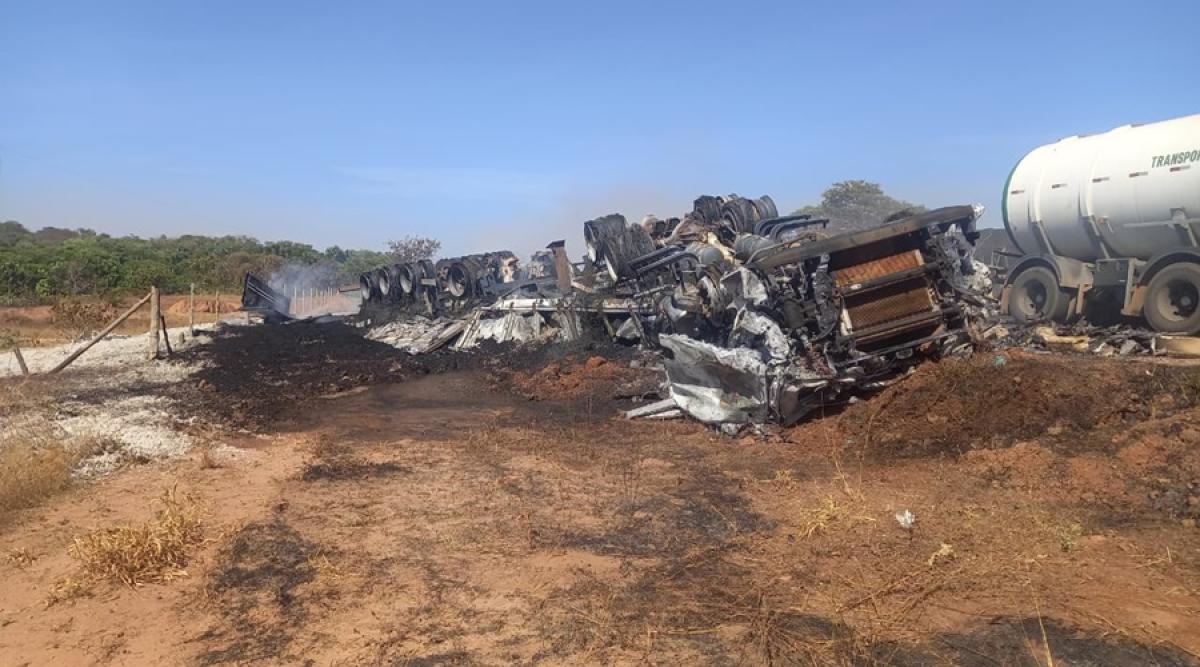 Um motorista de 30 anos, que não teve o nome divulgado, morreu carbonizado ao tombar a carrega com carga de algodão, na manhã desta quinta-feira (21), na BR-070, em Barra do Garças (509 km ao leste de Cuiabá). A vítima ficou presa às ferragens e causa do acidente é apurada.
