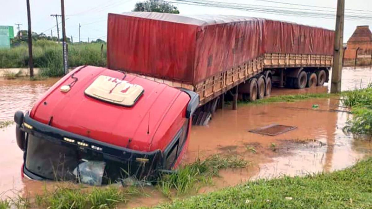 Com o acidente, a cabine da carreta ficou parcialmente submersa.