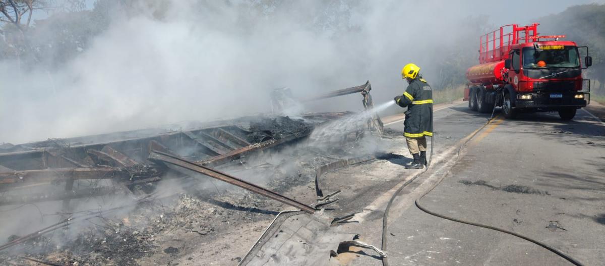 Uma carreta carregada de plásticos prensados foi tomada pelo fogo, no final da manhã de segunda-feira (20), na BR-070, em Cáceres (225 km ao Oeste). O motorista de 37 anos, que não teve seu nome divulgado, não sofreu nenhum tipo de ferimento. Já a carga foi totalmente perdida.