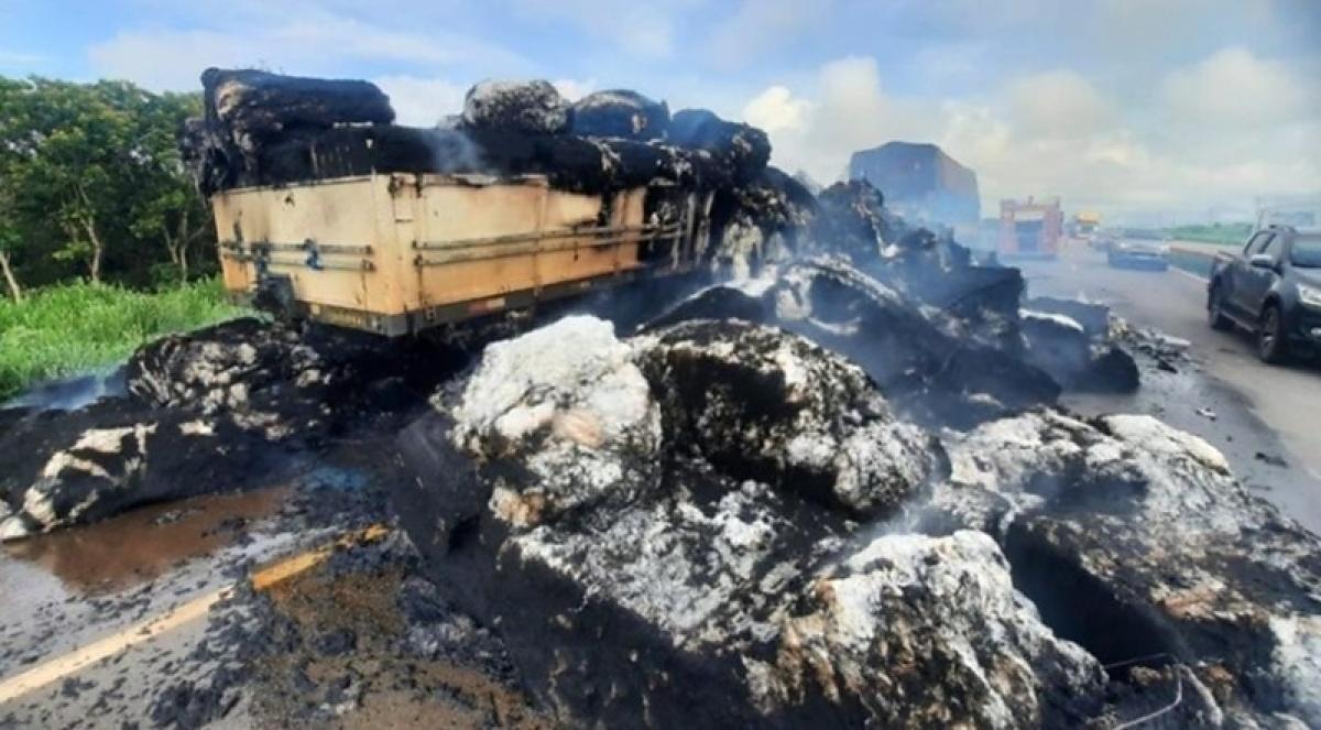Uma carreta carregada com plumas de algodão pegou fogo na rodovia BR-163, em Rondonópolis (212 km ao Sul de Cuiabá), na manhã desse domingo (04). O Corpo de Bombeiros realizou o controle das chamas e ninguém se feriu.