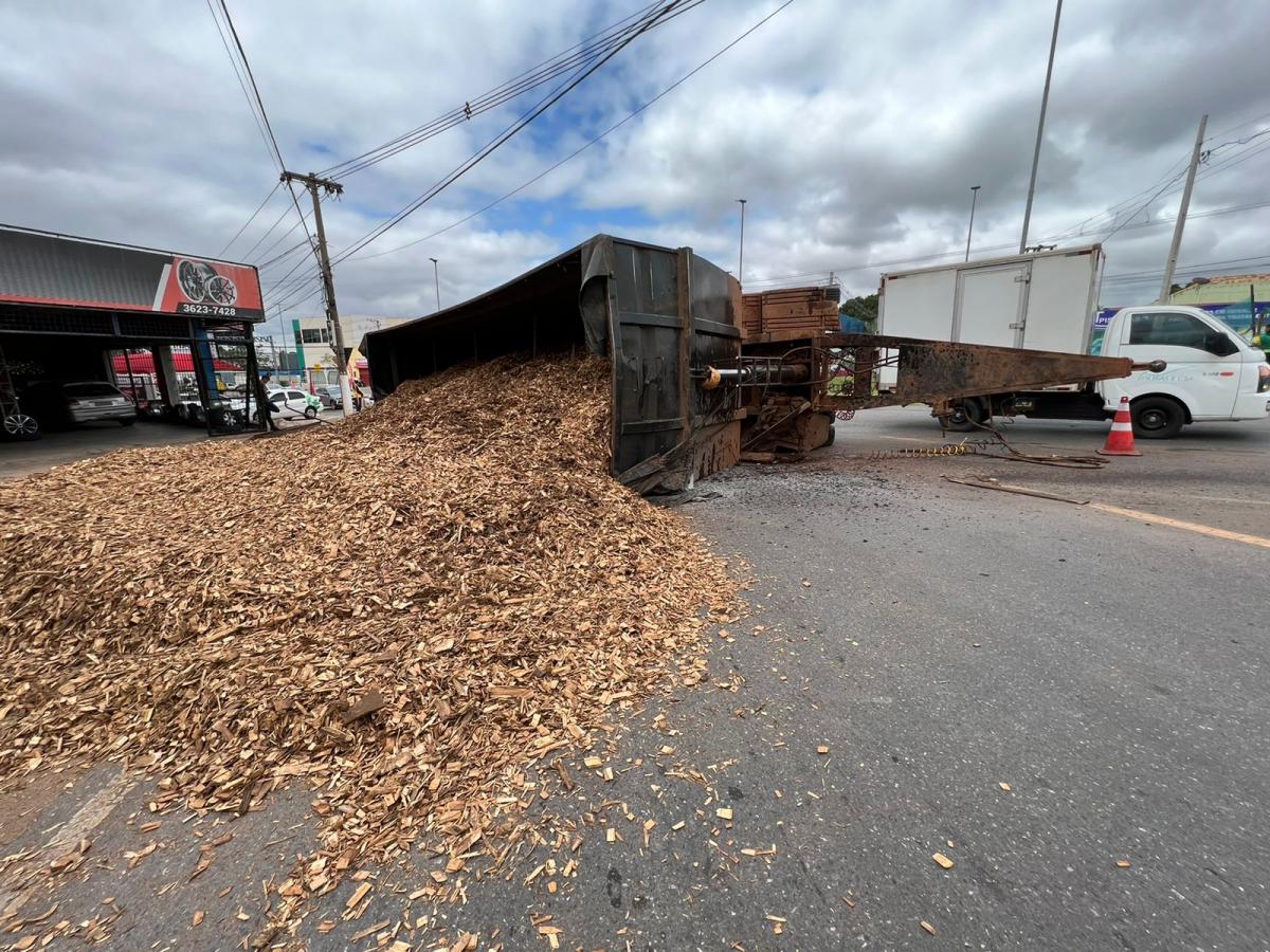 Um carreta carregada com serragem tombou em um das rotatórias da avenida Miguel Sutil. O acidente ocorreu na manhã desta sexta-feira (18) e não houve feridos. O trânsito ficou lento por alguns minutos, mas já flui normalmente.