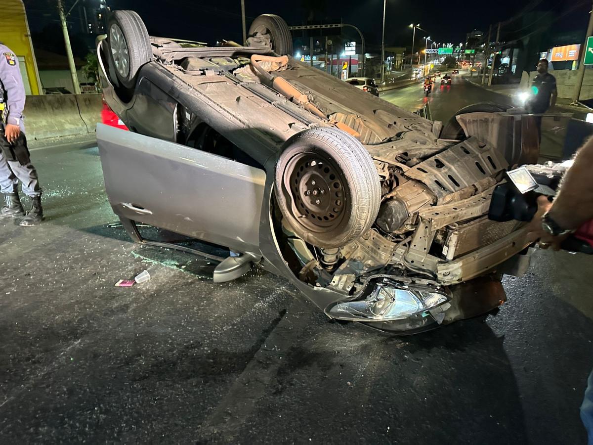 No veículo capotado estavam 3 pessoas e um animal de estimação. Eles tiveram alguns ferimentos leves e não precisaram de atendimento médico.