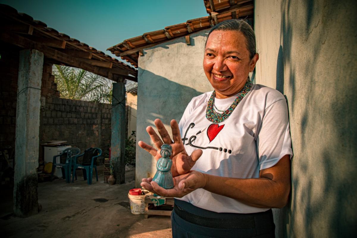 As obras de Nice Aretê também estão disponíveis no Espaço do Artesanato. Ele funciona na segunda-feira, das 8h às 17h, de terça-feira a sábado das 8h às 22h, e aos domingos das 15h às 21h.