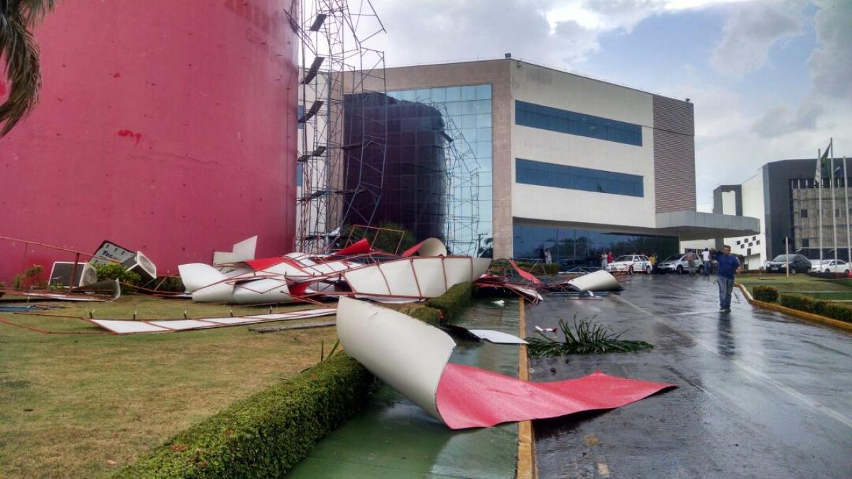 Ocorrências- Além disso, placas de PVC da fachada da Assembleia Legislativa de Mato Grosso, que está em obras, foram arrancadas. Segundo a assessoria da instituição, estavam sendo colocadas placas com revestimentos de PVC, na parte exterior do prédio, porém com a velocidade do vento, as que estavam somente encaixadas e não fixadas, caíram. O andaime também foi derrubado, mas não houve nenhuma pessoa ferida.